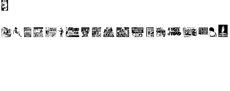 Explore more fonts with these tags: movies, hollywood, posters, magazines, dingbats, pictures, scary, creepy, horror, macabre, holidays, Halloween girls, females, new age