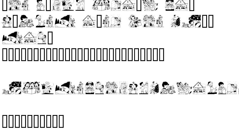 Explore more fonts with these tags: pictures, dingbats, holidays, Christmas, snow, santa, caroling, presents, tree