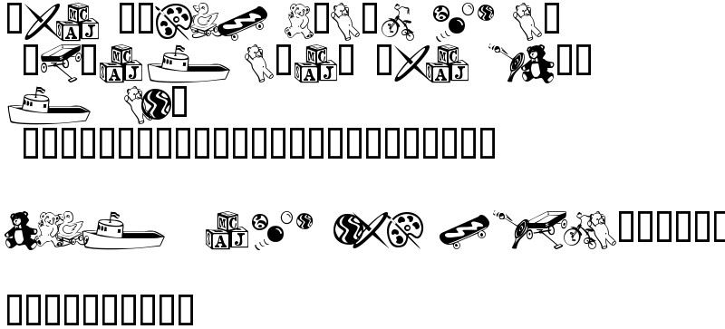 Explore more fonts with these tags: toys, children, teddy bears, kids, boat, blocks, babies, baby, ducks, balls, skateboard