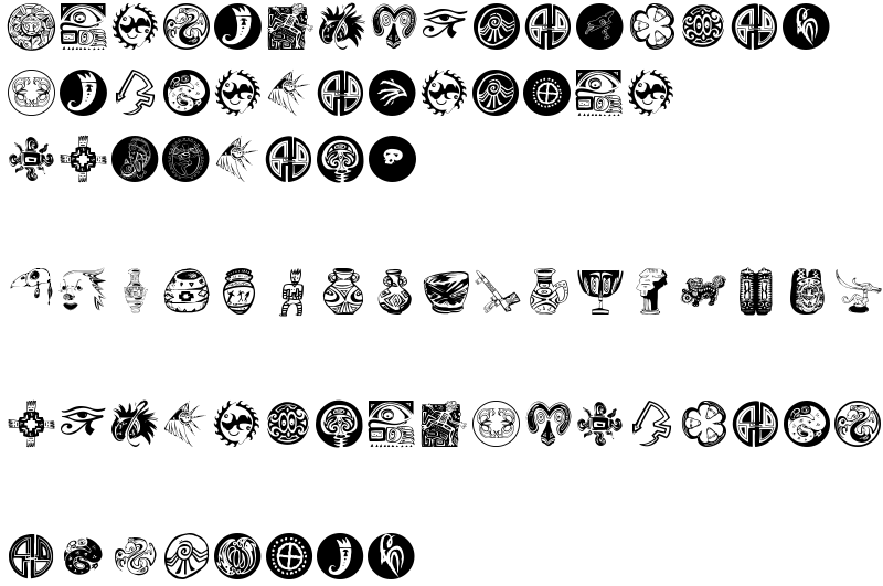 Explore more fonts with these tags: artifacts, pots, urns, ruins, dingbats, indians