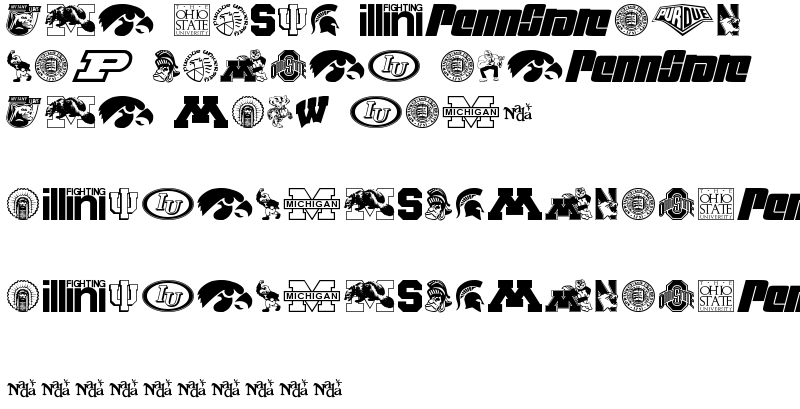 Explore more fonts with these tags: teams, sports, football, logos, schools, college, university, Illnois, Indiana, Iowa, Michigan, Michigan State, Minnesota, Northwestern, Ohio State, Penn State, Purdue, Wisconsin