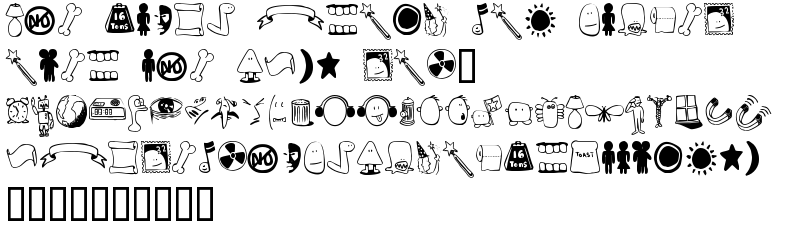Explore more fonts with these tags: lamp, alarm clock, robot, earth, trash can, eyes, noses, magnets, radioactive, toilet paper, dentures, wand