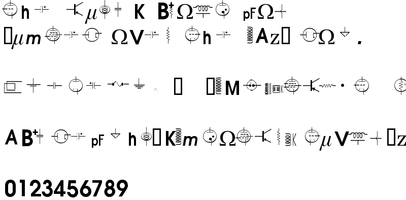 Explore more fonts with these tags: schematics, electrical, circuit board, engineering, mathematical, dingbats, symbols