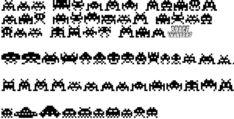 Explore more fonts with these tags: 1980s, space invaders, video games, aliens, dingbats