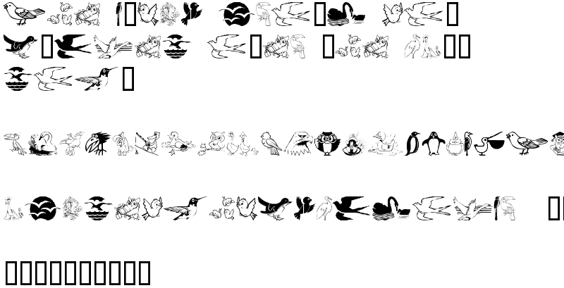 Explore more fonts with these tags: birds, animals, hummingbird, swan, parrot, owl, penguin, flying, ducks, dingbats, nature, pelican