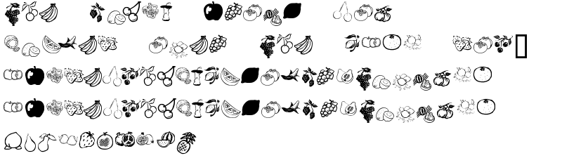 Explore more fonts with these tags: fruit, food, apples, bananas, cherry, cherries, grapes, oranges, lemons, dingbats, sugar