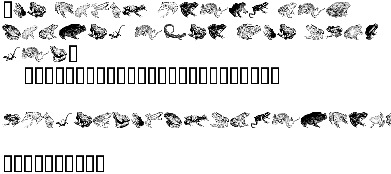 Explore more fonts with these tags: amphibians, frogs, dingbats, toads
